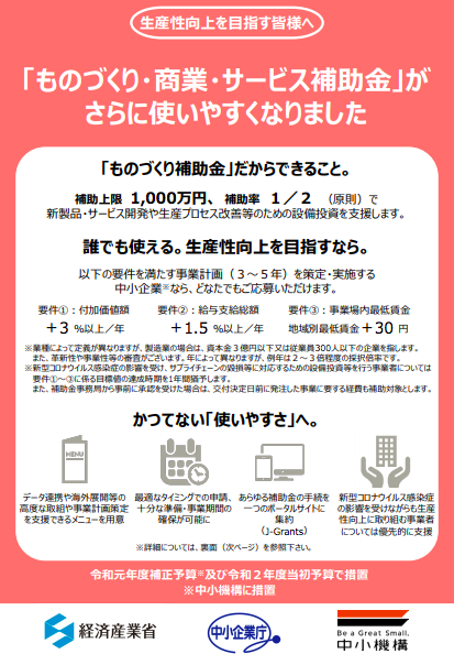 ②ものづくり補助金(革新的なサービス等で設備投資が必要となる場合に活用できる補助金です。)